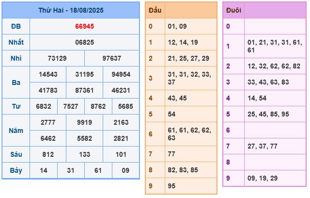 Trước khi đến với phần dự đoán, chúng ta hãy cùng điểm qua bảng kết quả XSMB ngày 18/08/2025 để soi lại các đường cầu tiềm năng.