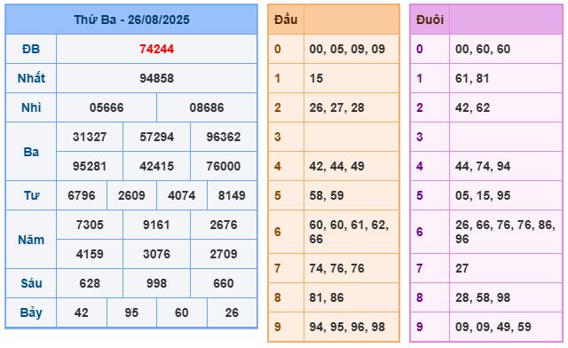 Trước khi đến với phần dự đoán, chúng ta hãy cùng điểm qua bảng kết quả XSMB ngày 26/08/2025 để soi lại các đường cầu tiềm năng.